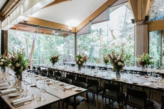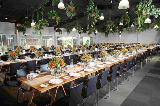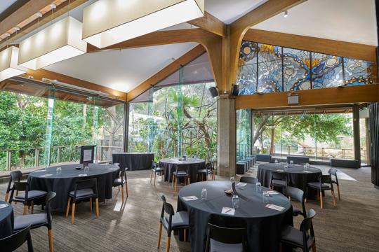 At the heart of the Elephant trail, bold dark timber panelling, floor to ceiling windows and hidden location, this room is perfect for numbers up to 145 guests.
